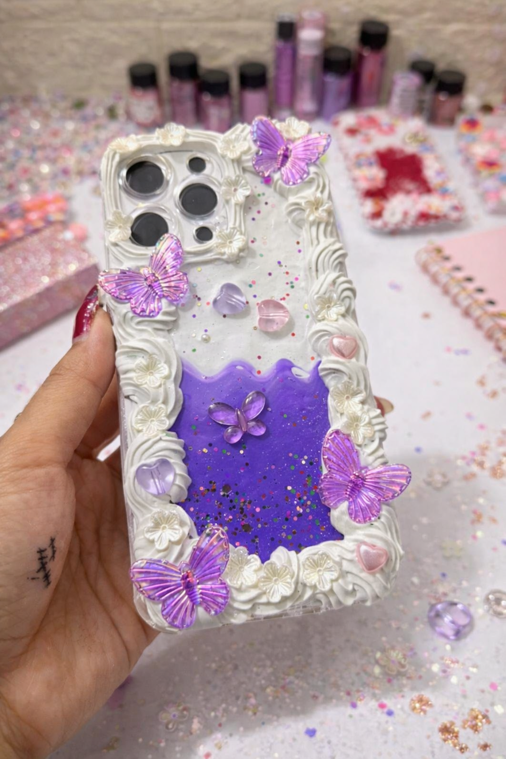 Add a touch of magic to your phone with our 3D Butterfly Aesthetic Mobile Case, beautifully handcrafted with premium clay art, floral textures, and sparkling details. Featuring a dreamy purple gradient design with 3D butterflies, this case is perfect for anyone who loves cute, aesthetic, and luxury phone accessories.